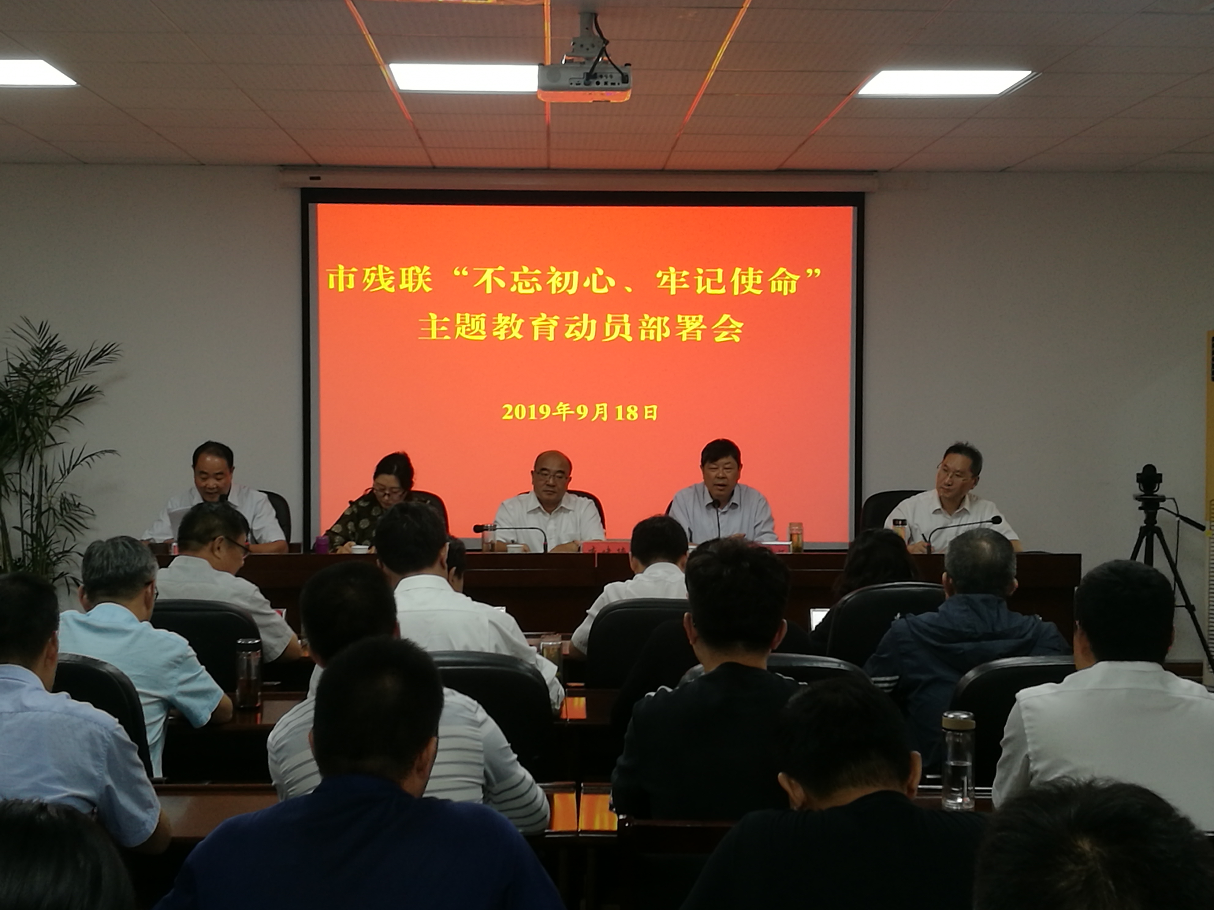 2019年9月18日上午,市残联召开“不忘初心、牢记使命”主题教育动员部署会。市委主题教育第七指导组全体人员、市纪委第十六纪检组组长、市残联机关全体人员、离退休老党员代表参加了会议。