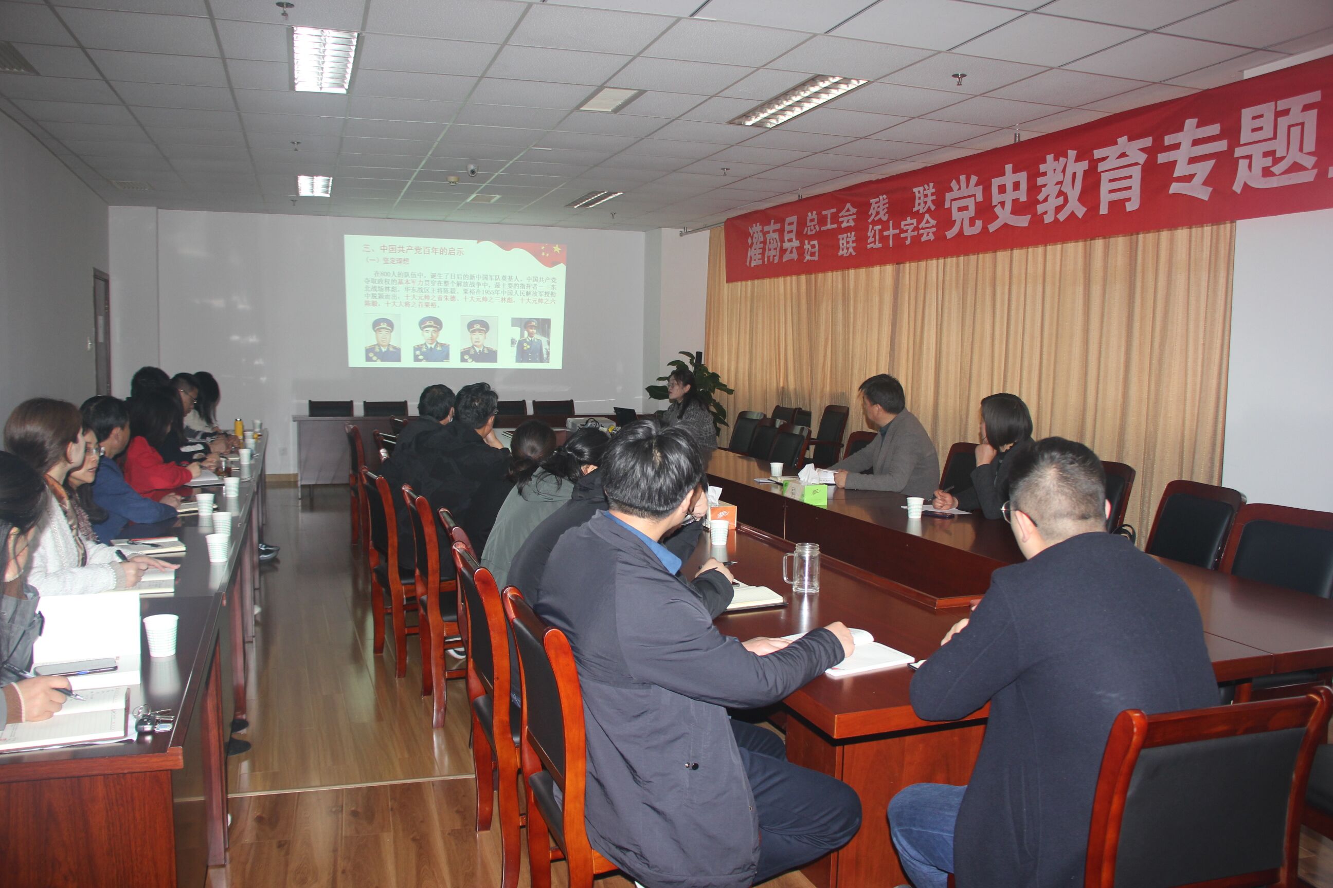 根据县委党史教育宣讲团工作安排,4月21日上午,县残联组织党员干部参加了县党史学习教育宣讲报告会,县委党史学习教育宣讲团成员、县委党校基地办教师孙璐为参会党员作了党史学习教育辅导报告。
