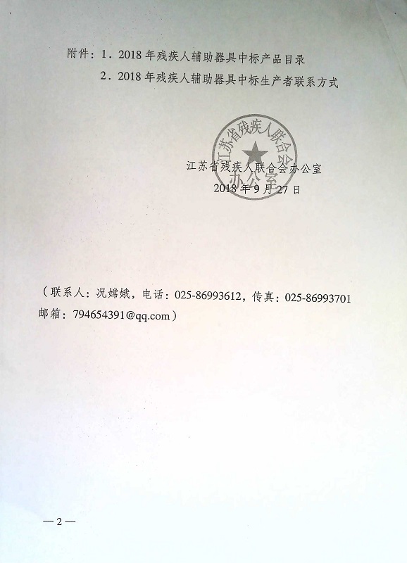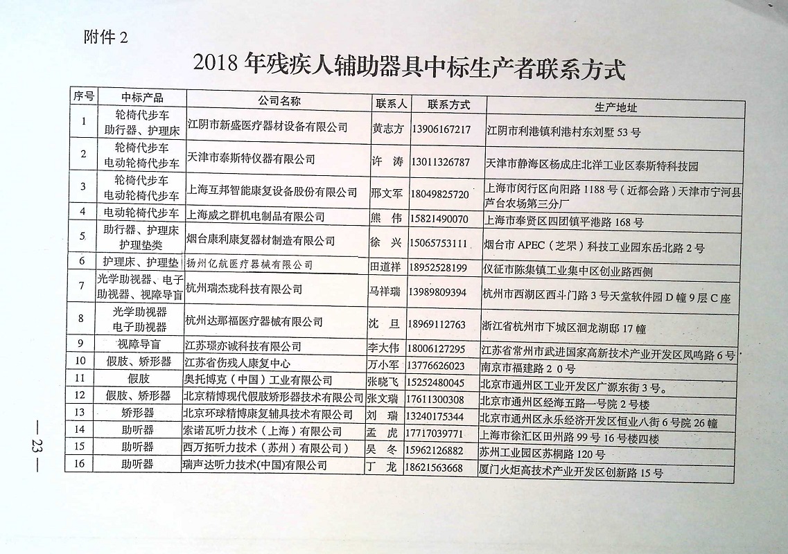 省残联办公室关于公布2018年残疾人辅助器具生产者中标产品目录及联系方式的通知