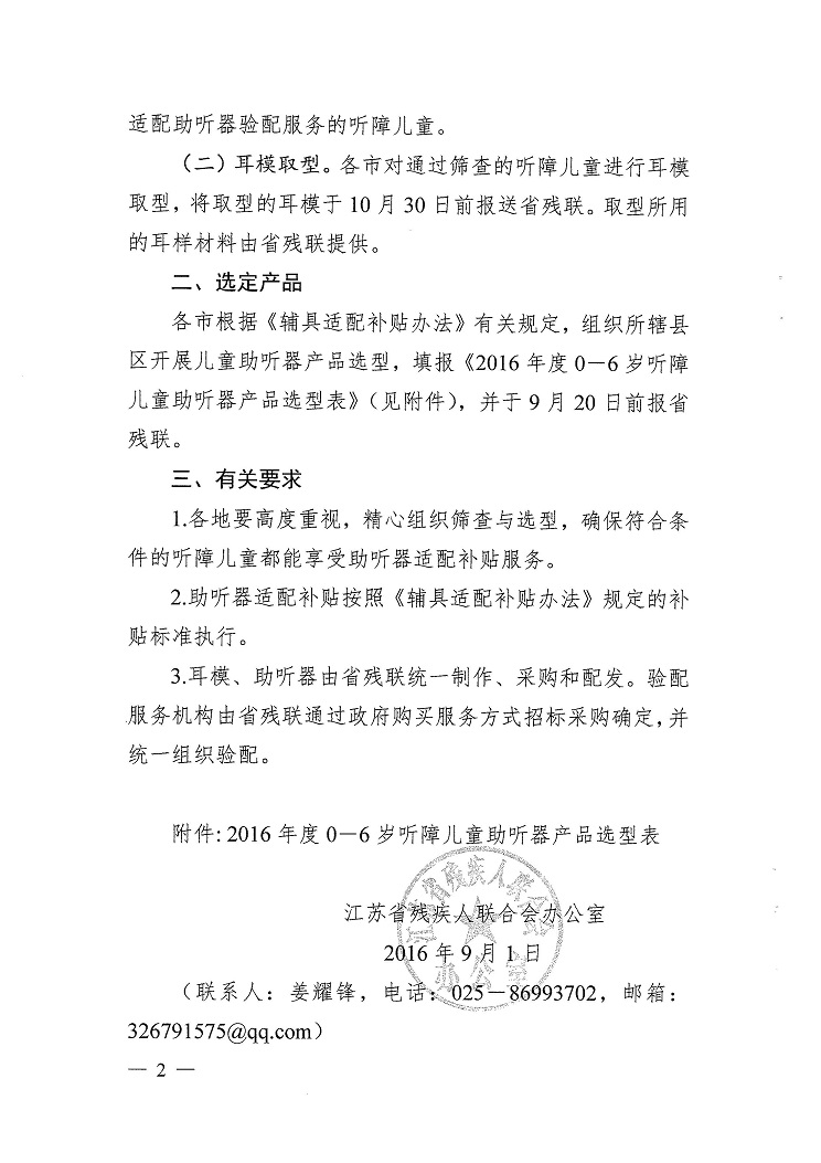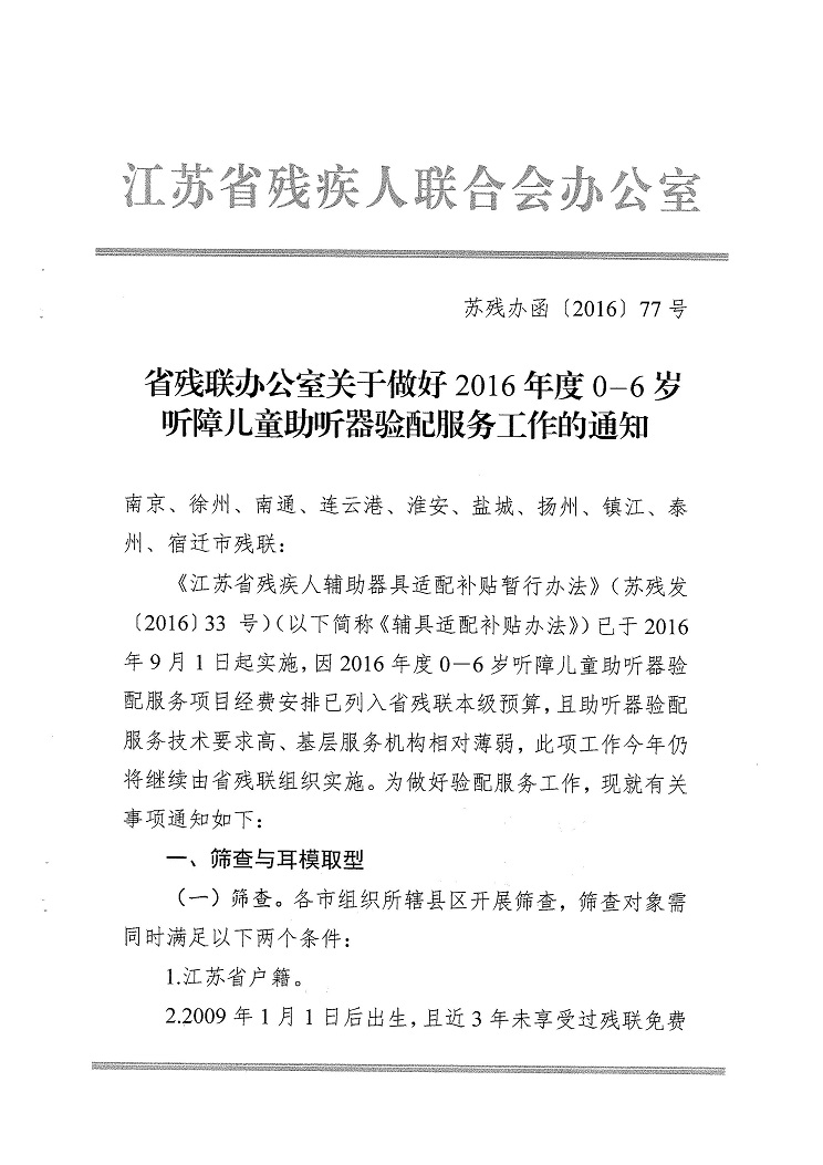 省残联办公室关于做好2016年度0-6岁听障儿童助听器验配服务工作的通知