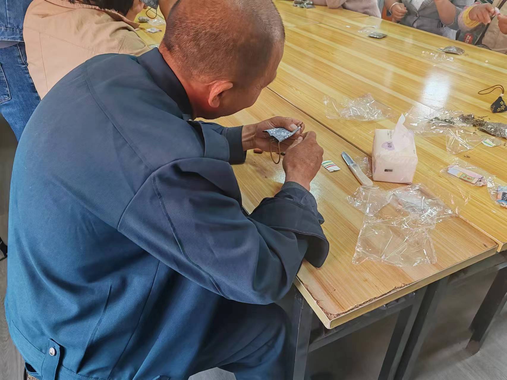 培训中,培训老师结合中国传统节日端午节,不仅详细的讲解了香包的起源和功效,还重点教学了香包的缝制步骤和手法,帮助学员们快速的了解缝制工艺的技巧,学员们非常感兴趣,现场气氛非常热烈。