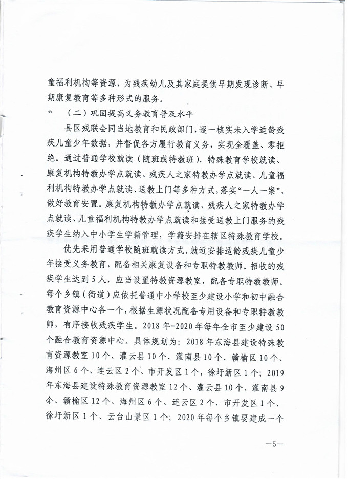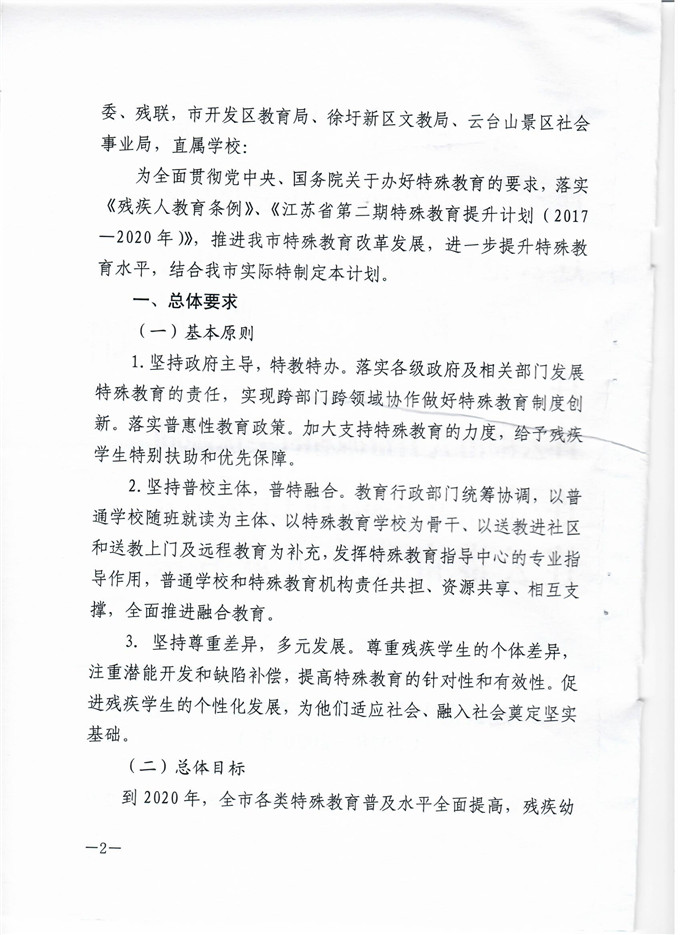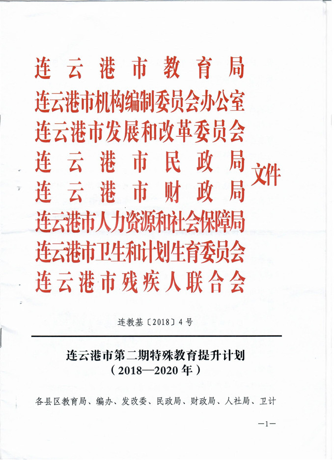 连云港市第二期特殊教育提升计划(2018-2020年)