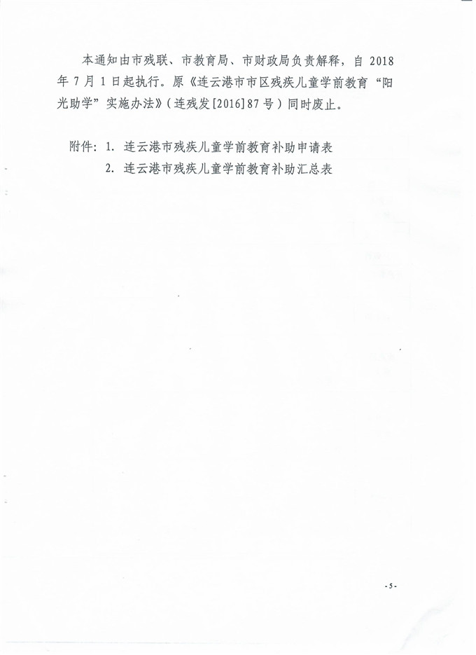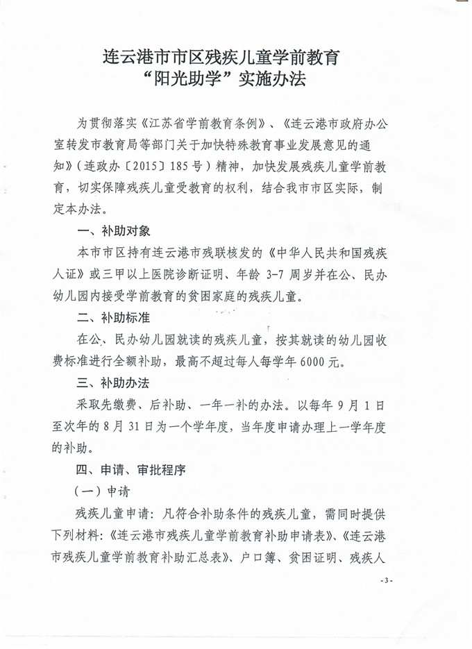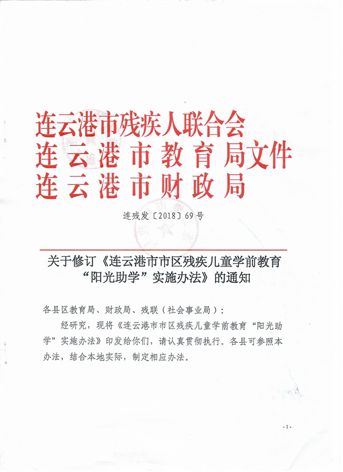 关于修订《连云港市市区残疾儿童学前教育“阳光助学”实施办法》的通知