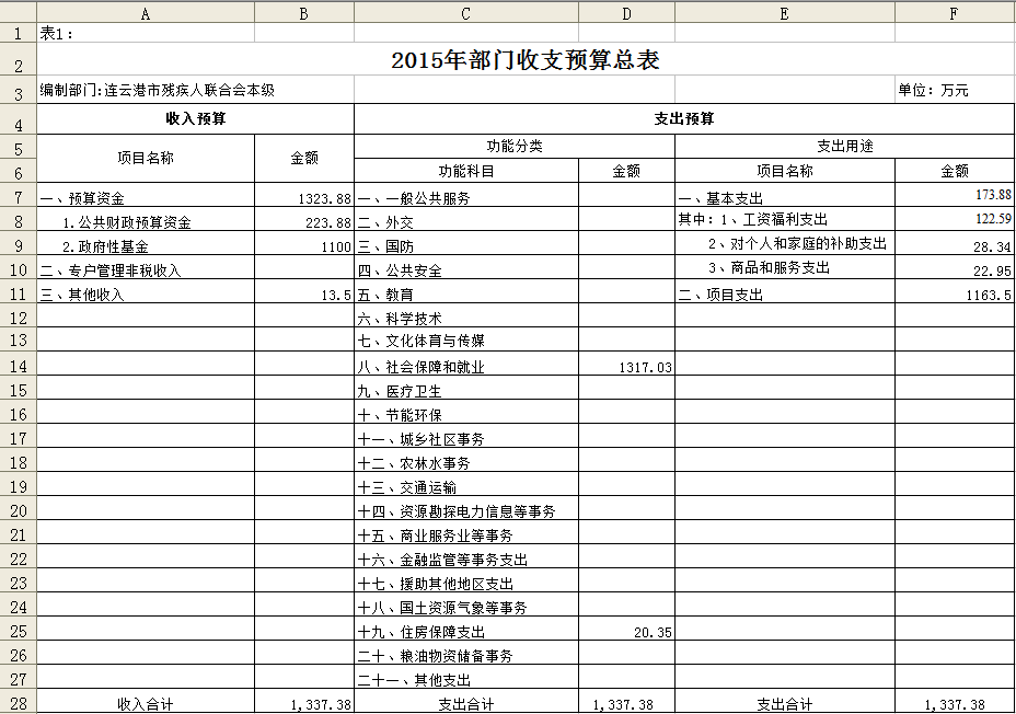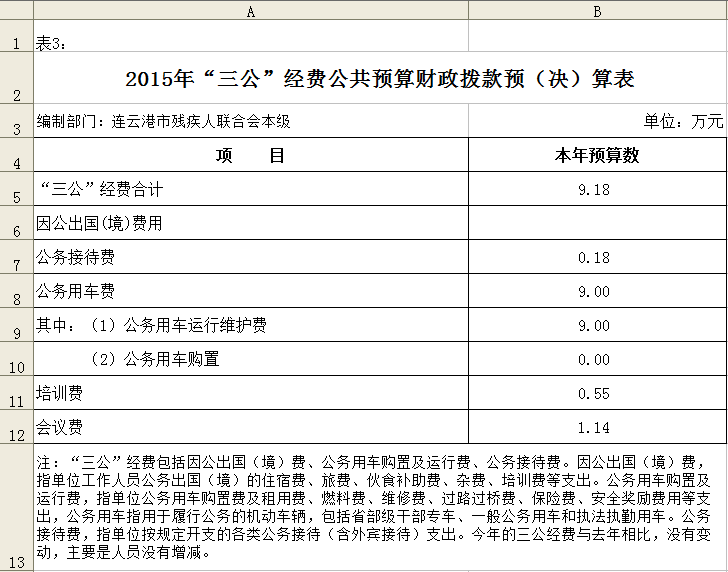 2015年度预算情况: