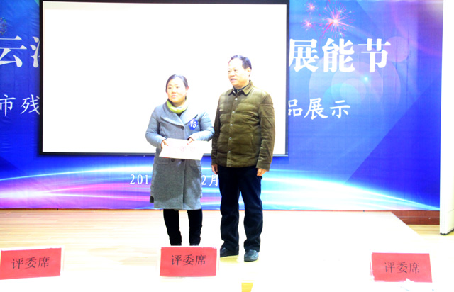 市残联副理事长赵绪启为王彩霞颁奖