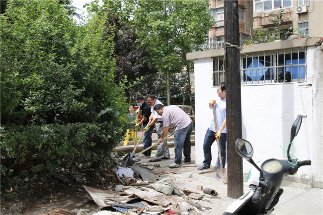 上午,为配合我市做好国家卫生城市创建工作,市残联全体干部职工在赵绪启副理事长带领下到新孔社区开展卫生清理活动。
