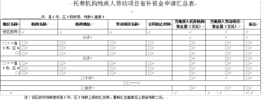 附件:托养机构残疾人劳动项目省补资金申请汇总表