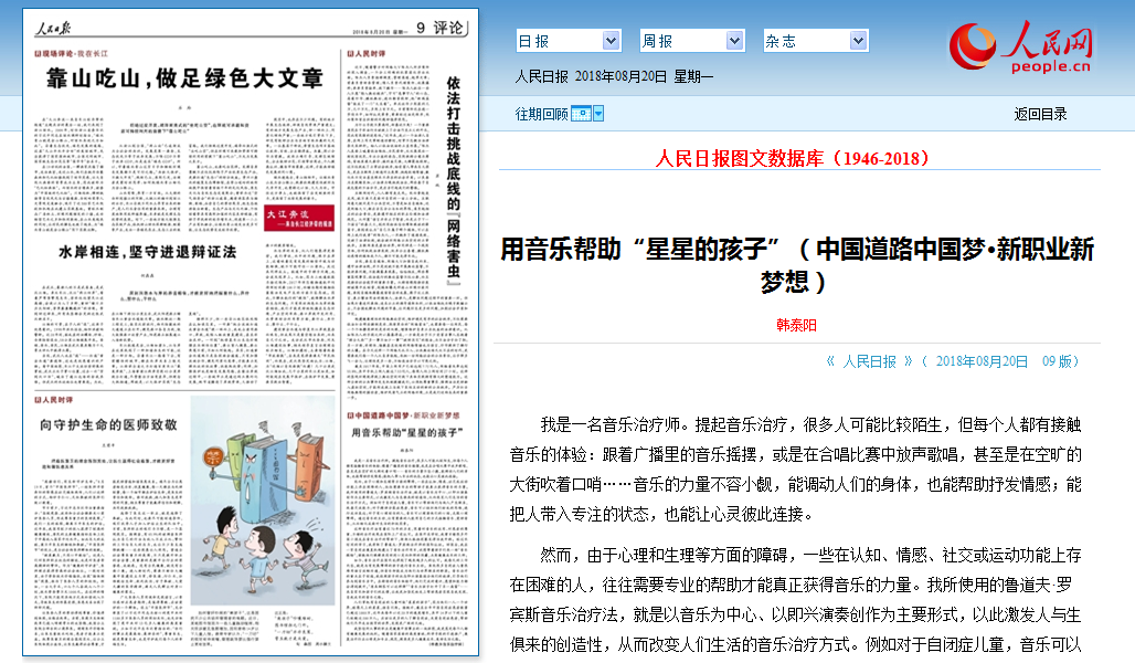 我是一名音乐治疗师。提起音乐治疗,很多人可能比较陌生,但每个人都有接触音乐的体验:跟着广播里的音乐摇摆,或是在合唱比赛中放声歌唱,甚至是在空旷的大街吹着口哨……音乐的力量不容小觑,能调动人们的身体,也能帮助抒发情感;能把人带入专注的状态,也能让心灵彼此连接。