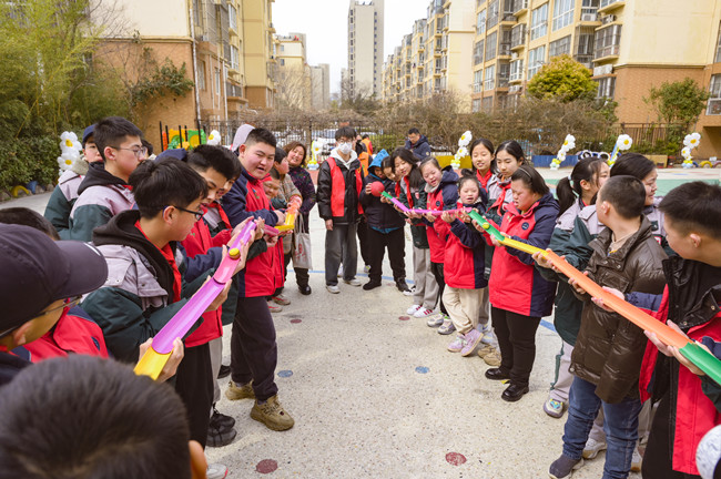 3月17日,市智协6 名志愿者带领新海初级中学22名学生来到韾康宝贝融合园。融合园老师带领大家参观校园并给同学们详细讲解了唐氏综合征的相关知识。随后,进入游戏环节,通过抽签让同学们和“糖宝宝”们随机组合做游戏。“珠行万里”游戏,通过协作滚珠,有效锻炼并增强了孩子们的肢体协调能力和合作精神。大家还携手完成了以“绽放的花”为主题的绘画游戏,共同创作出了一幅幅象征着美好和希望的美丽花朵。在欢声笑语中结下了美好的友情。游戏结束后,每一名中学生都为“糖宝宝”送上了自己精心准备的礼物。