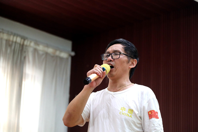 慰问演出在市盲人协会说唱团演奏的器乐合奏《军歌嘹亮》中拉开了帷幕。《打靶归来》《夜航之歌》《都有一颗红亮的心》《我爱五指山,我爱万泉河》《读毛主席的书》《把一切献给党》《小路》等耳熟能详的军旅歌曲,引起了复员军人的强烈共鸣,他们情不自禁的跟随音乐的旋律一起歌唱。快板书《奇袭白虎团》、非洲鼓萨克斯合奏《爱拼才会赢》、京剧联唱《我是中国人》、《毛主席诗词》朗诵等节目,赢得了复员军人阵阵热烈的掌声。海州区盲人协会主席杨思杰演唱的《在那桃花盛开的地方》,把演出气氛推向了高潮,台上台下激情互动,演出现场洋溢着浓浓的“军爱民,民拥军”的鱼水深情。在演出过程中,来自灌云县盲协、海州区盲协的20名盲人按摩师为复员军人提供了专业细致的按摩服务,受到了复员军人的一致好评。