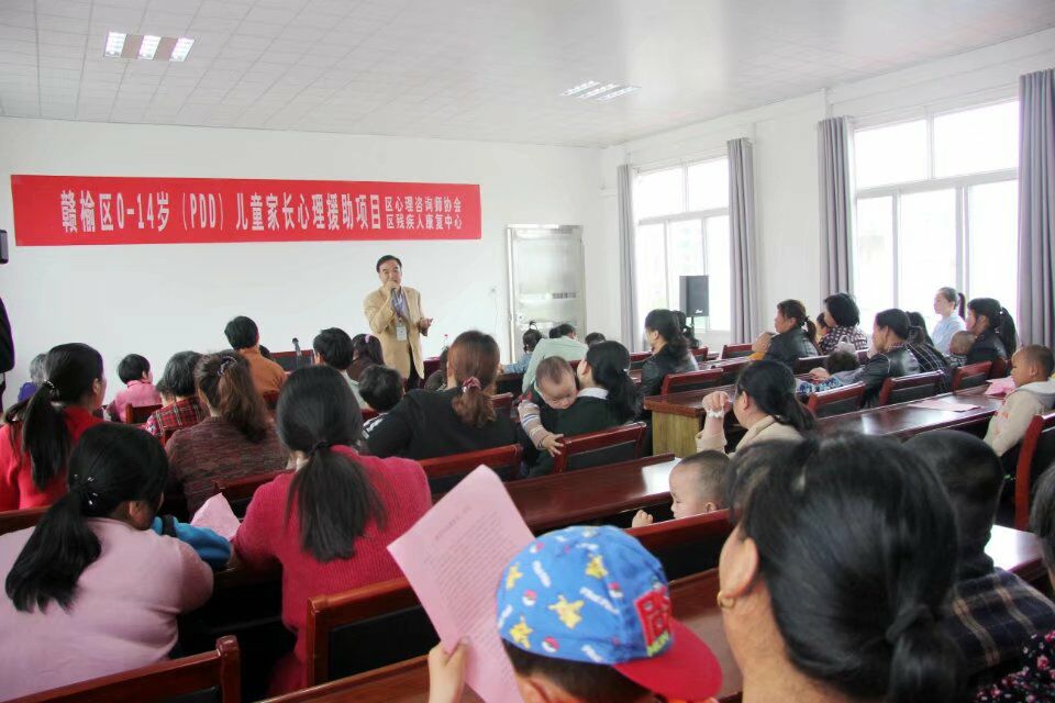 在2017年全国助残日来临前夕,赣榆区心理咨询师协会组织志愿者走进区残疾人康复中心,与康复中心联合举办“0-14岁儿童家长心理关爱活动”,为在训智障孩子和家长开展心理援助爱心公益活动。